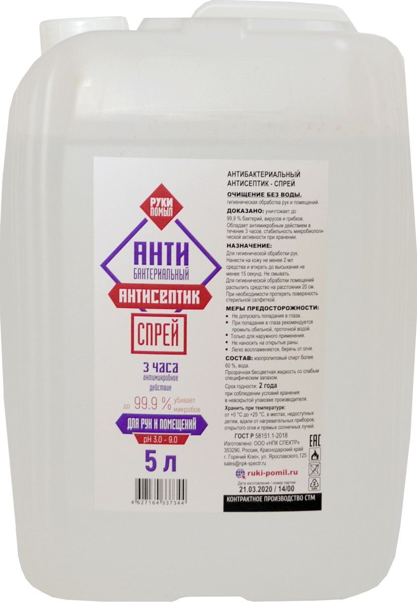 Антибактериальный спрей "Руки помыл" кан.5л.