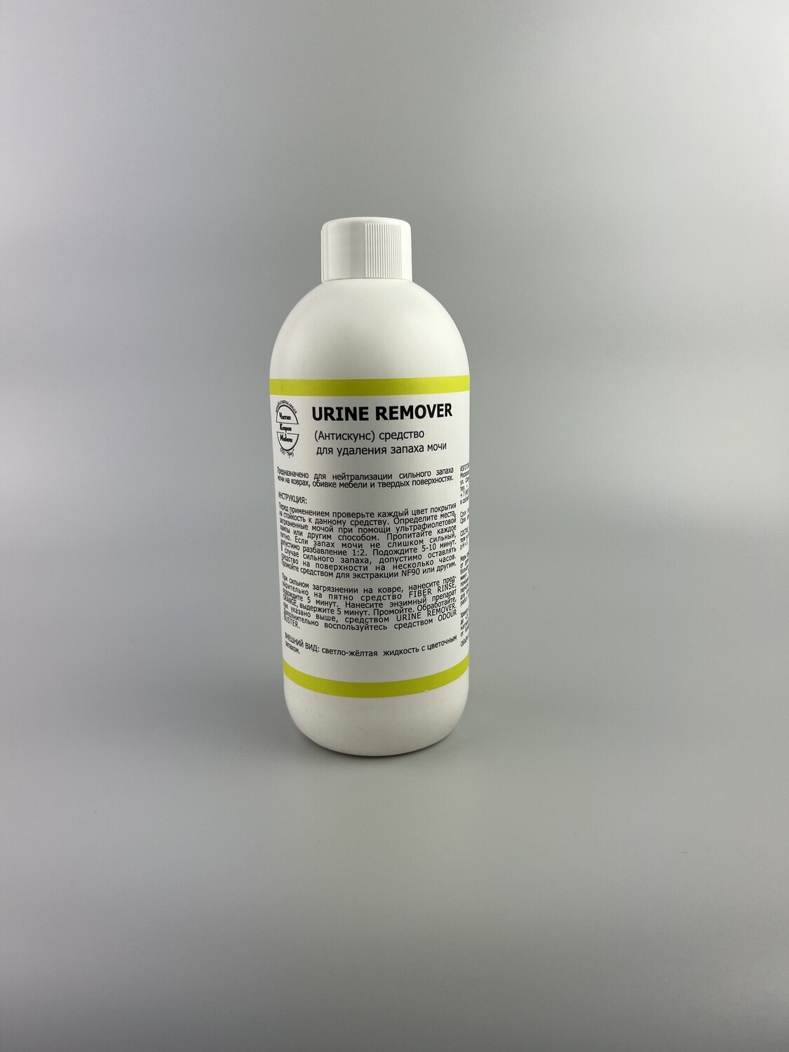 Перед применением проверьте каждый цвет покрытия на стойкость к данному средству. Определите места, загрязненные мочой при помощи ультрафиолетовой лампы или другим способом. Пропитайте каждое пятно. Если запах мочи не слишком сильный, допустимо разбавление 1:2. Подождите 5-10 минут. Промойте средством для экстракции NF90 или другим. При сильном загрязнении нанесите предварительно на пятно средство FIBER RINSE, подождите 5 минут. Нанесите энзимный препарат ORANGE, выдержите 5 минут. Промойте. Обработайте, как указано, выше средством URINE REMOVER.