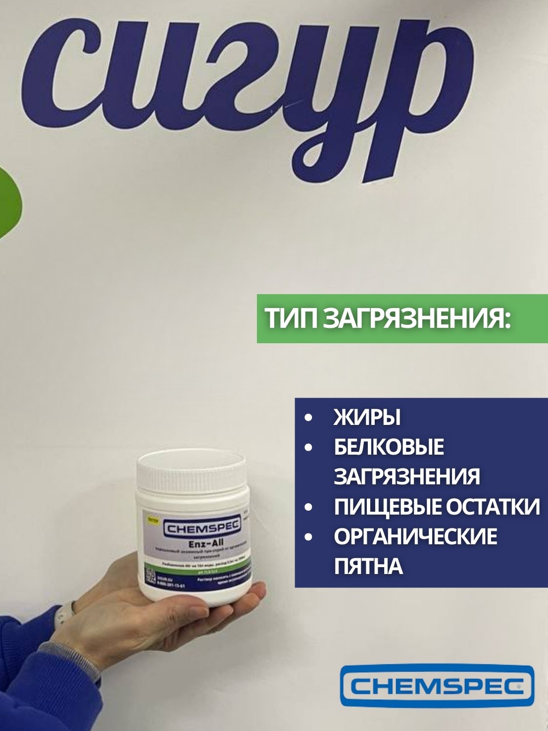 Chemspec: Enz-All (Энз-Ол) 0,5кг.энзимный преспрей от органических загрязнений (фасовка.тестер)