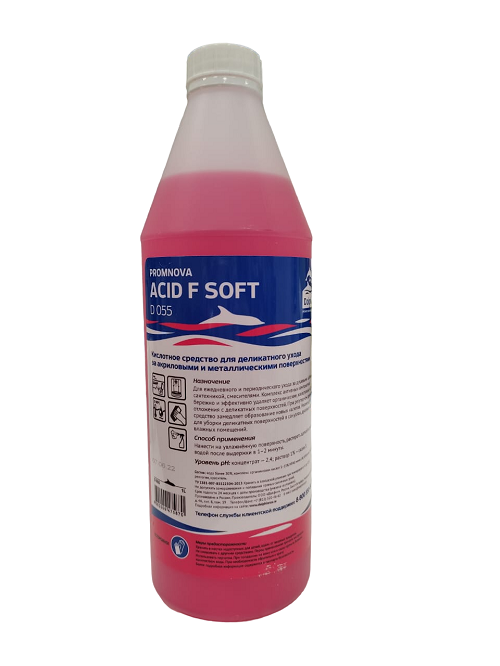 Dolphin: Promnova Acid F Soft 1л/12шт Слабокислотное ср-во для акриловых ванн, душевых кабин