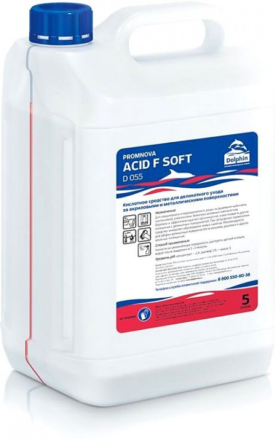 Dolphin: Promnova Acid F Soft 5л/3шт Слабокислотное ср-во для акриловых ванн, душевых кабин и сантех