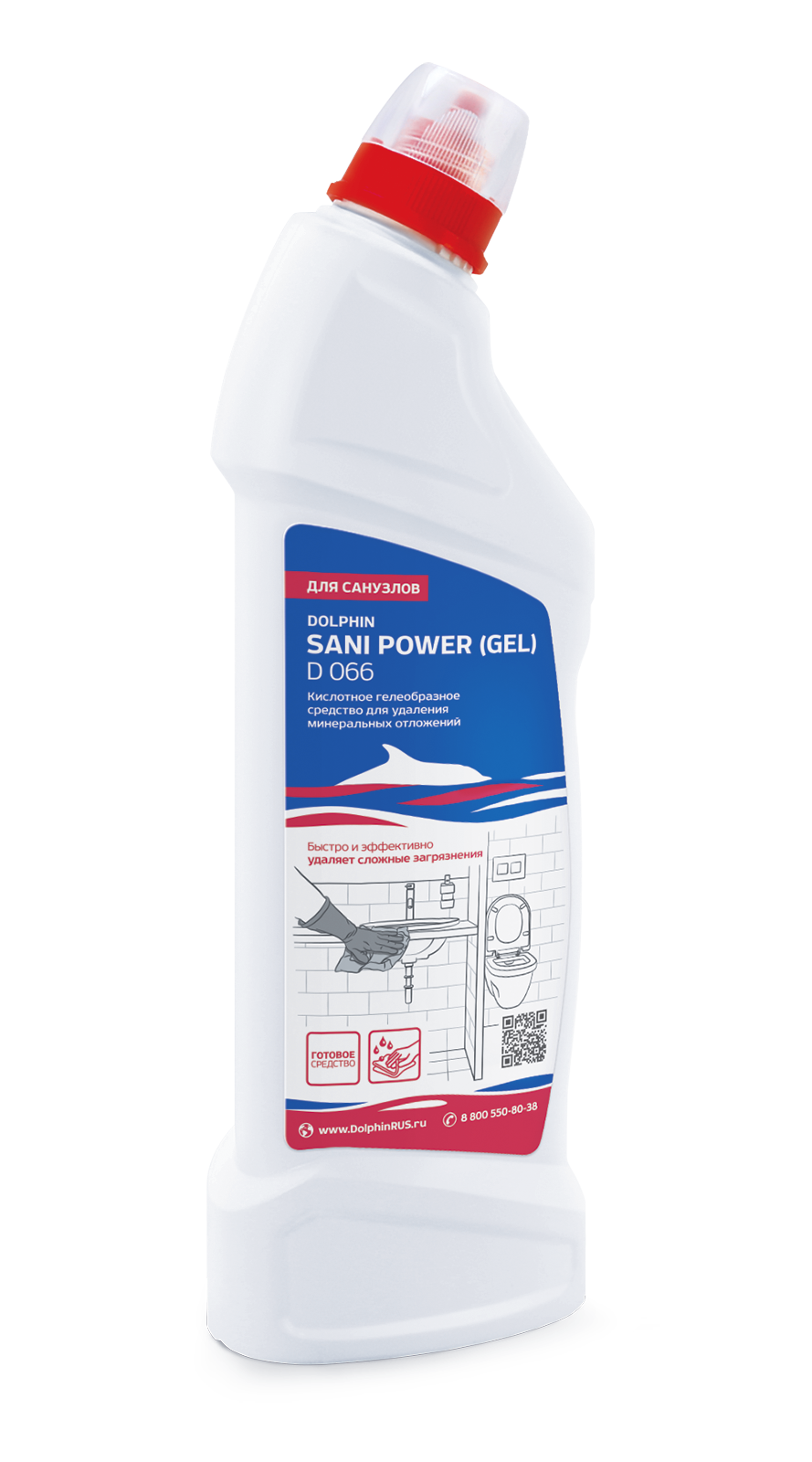 Dolphin: Sani Power (Gel) 0,75л/12шт Гелеобразное сильнокислотное ср-во д/удаления минерал. отложен.