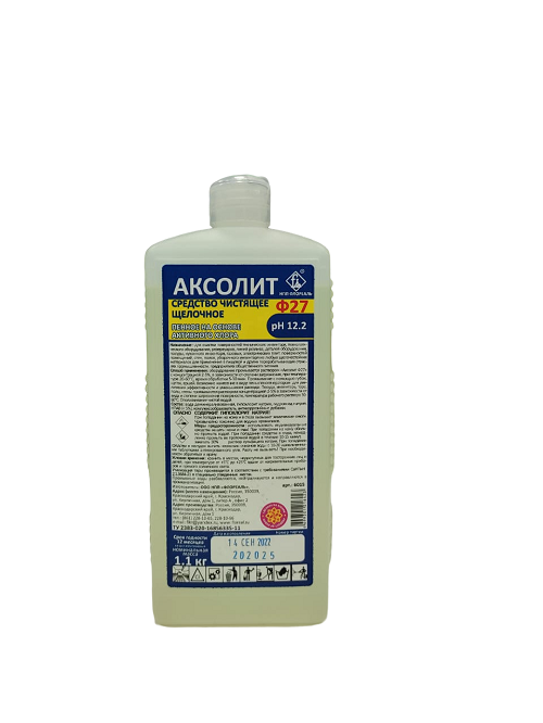 Оборудование промывается растворос "Аксолит Ф27" с концентрацией 2-5%, в зависимости от степени загрязнения, при температуре 20-60°С, время обработки 5-30 мин. Промывание с помощью губок, щеток, ершей. Возможно нанесение в виде пены пеногенератором для увелечения эффективности и уменьшения расхода. Посуда, инвентарь, тара, полы, стены промываются раствором концентрацией 2-5% в зависимости от вида и степени загрязнения поверхности, температура рабочего раствора 30-60°С. Ополаскивание чистой водой.
