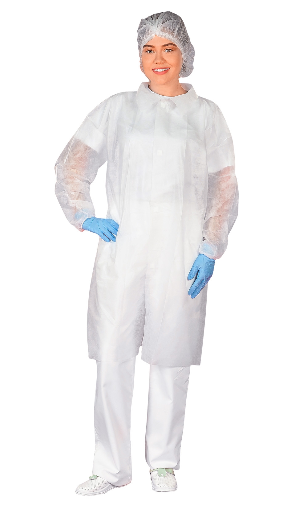 Халат ВИЗИТЕР на кнопках цв. бел.тк. Спанбонд 112-0270-01
