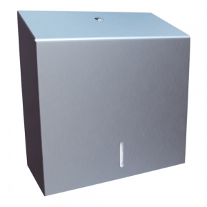 Диспенсер Merida Stella Maxi представляет собой диспенсер для бумажных полотенец ZZ в сложенном виде. Он изготовлен из матовой нержавеющей стали и оснащен прочным стальным цилиндрическим замком заподлицо и надежно закреплен, что придает ему эстетичный вид, а содержимое защищено от кражи. Боковые стыки сварены и отшлифованы, петли незаметны. В дозаторе есть окошко для контроля количества полотенец. Благодаря конструкции дозатора полотенца подают по одному листу за раз, и пользователь всегда касается одного листа.
