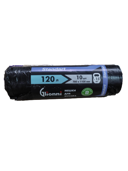 Мешки для мусора: 120л Standart New Glionni ПНД, черные, 19мкм, 110*70см, 10шт/рул, 25рул/уп