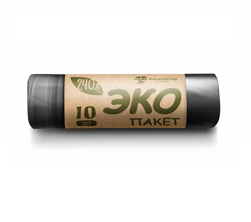 Мешки для мусора: 240л ЭКО ПВД, черные, 35мкм, 120*90см, 10шт/рул, 12рул/уп