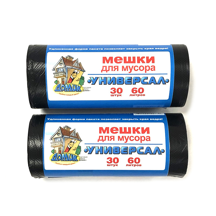 Мешки для мусора: 60 л. "Домик" Универсал 11мкр. 30шт в рул.(25рул в упак)