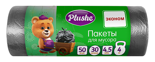 Мешки для мусора: 30л Plushe (23,5*49) 50шт/рул, 4,5мкм, эконом, 50рул/упак.