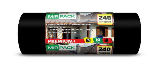 Мешки для мусора: 240л Premium ПВД, черные, 45мкм, 127*92см, 10шт/рул, 10рул/уп