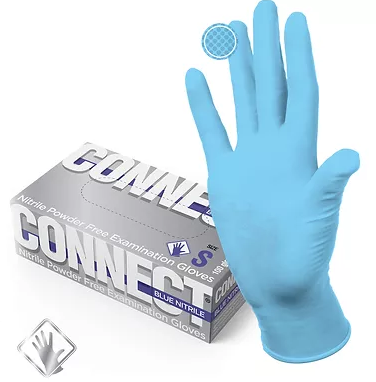 Перчатки: Connect blue nitrile нестерильные нитриловые однораз.50пар/пач, М