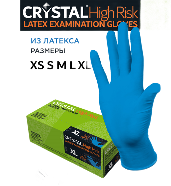 Перчатки CRYSTAL High Risk синие L нестерильные латексные 25пар/пач