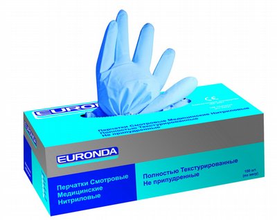 Перчатки нитриловые голубые L, 50 пар