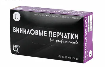 Перчатки виниловые, неопудренные LINGER черные, L, 50пар в упаковке
