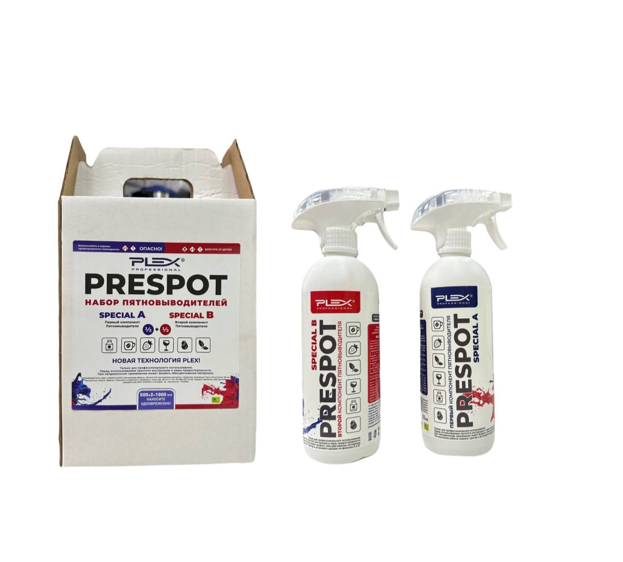 PLEX: Prespot Special A и B Набор пятновыводителей 2 шт*500 мл в коробке (аналог Chemspec: Dye Gon)