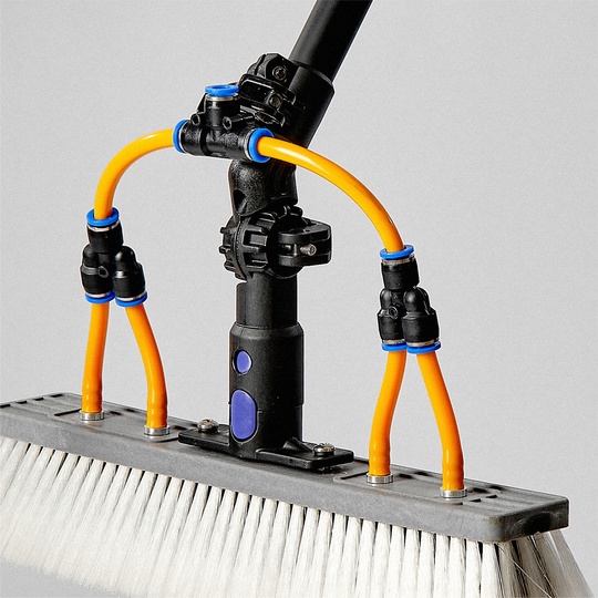 Он прикрепляется к верхней части штанги, позволяя регулировать угол наклона щетки, под которым щетка обращена к поверхности окна или фасада.