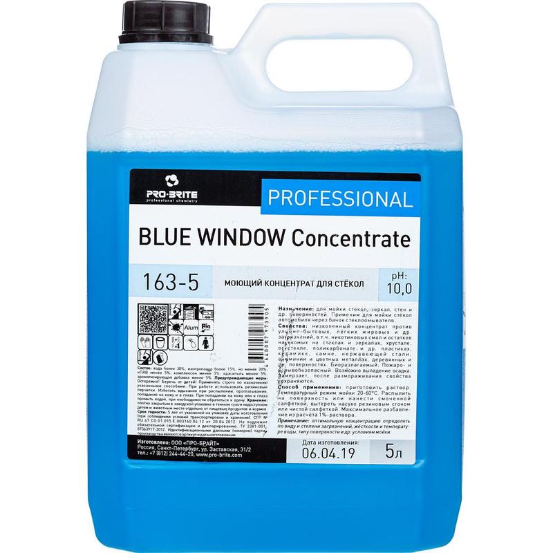 Pro-Brite: Blue Window Concentrate 5л/4шт Моющий концентрат для стёкол и зеркал