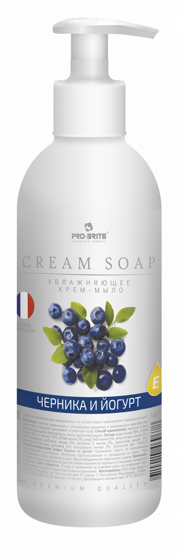 Pro-Brite: Crem Soap Черника и йогурт (Premium) 0,5л 10 шт/кор Увлажняющее крем-мыло