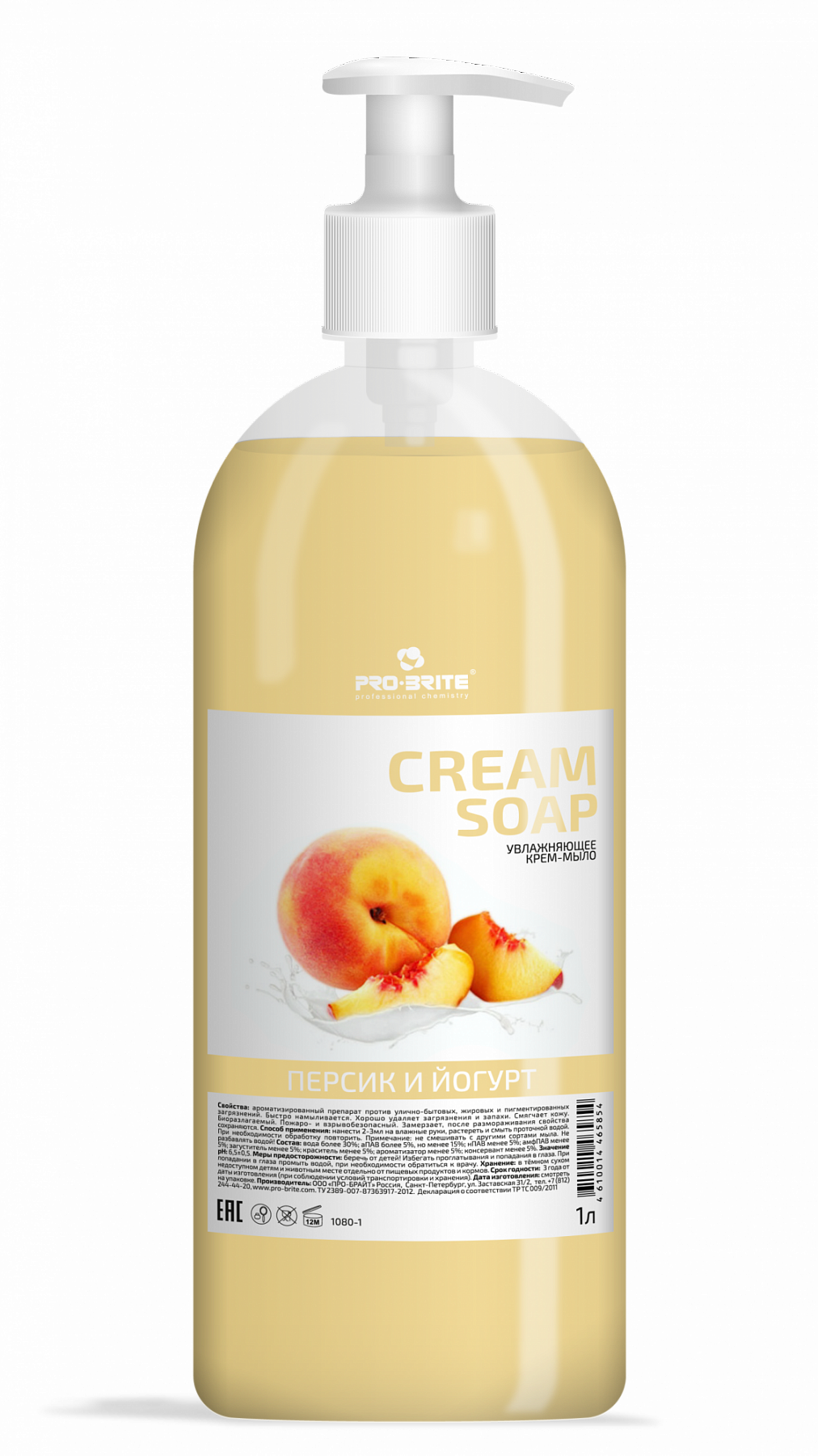 Pro-Brite: Crem Soap Персик и Йогурт (Standart) 1л/12шт Увлажняющее крем-мыло