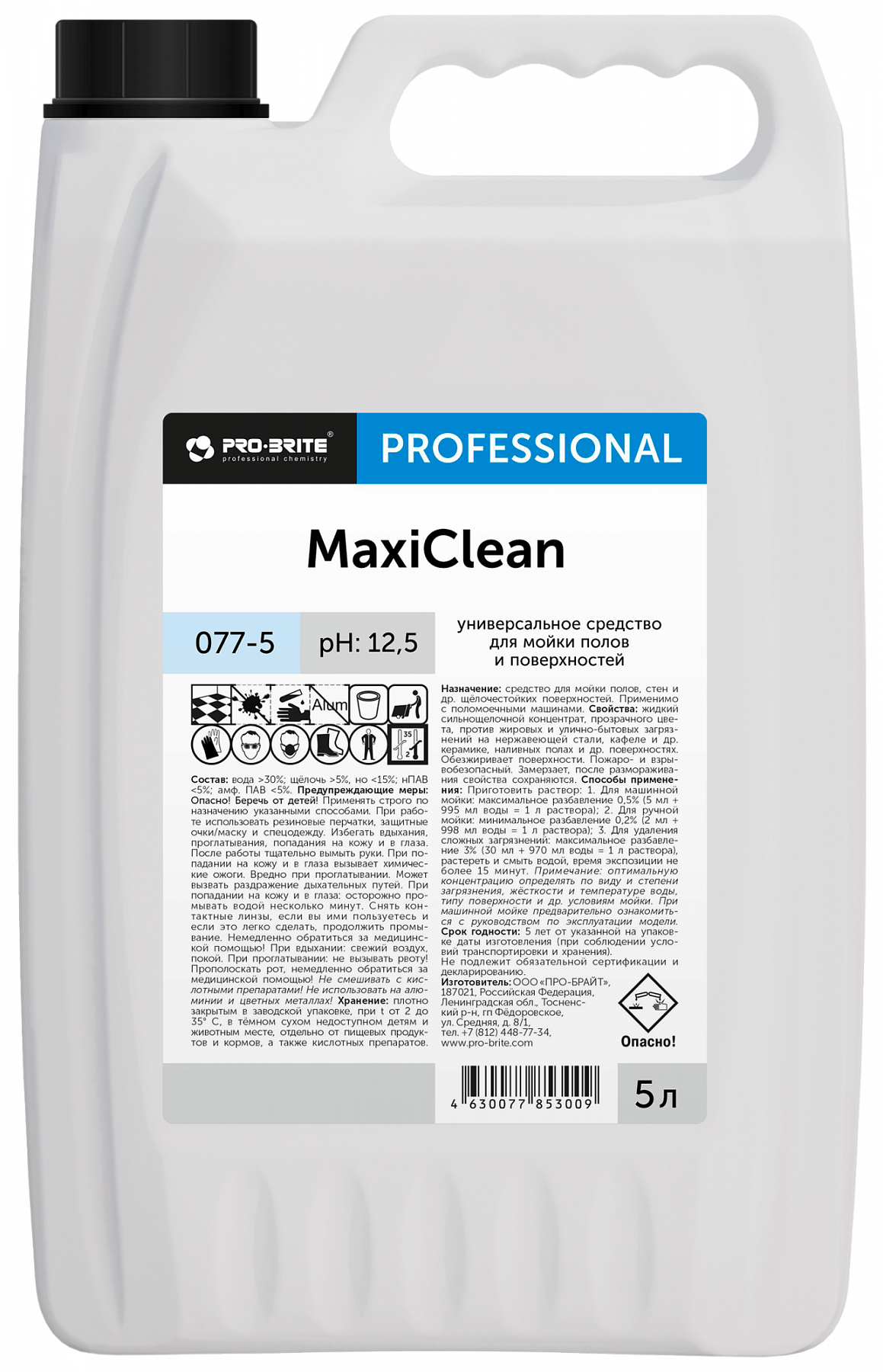 Pro-Brite: MaxiClean 5л/4шт Универсальное средство для полов и поверхностей