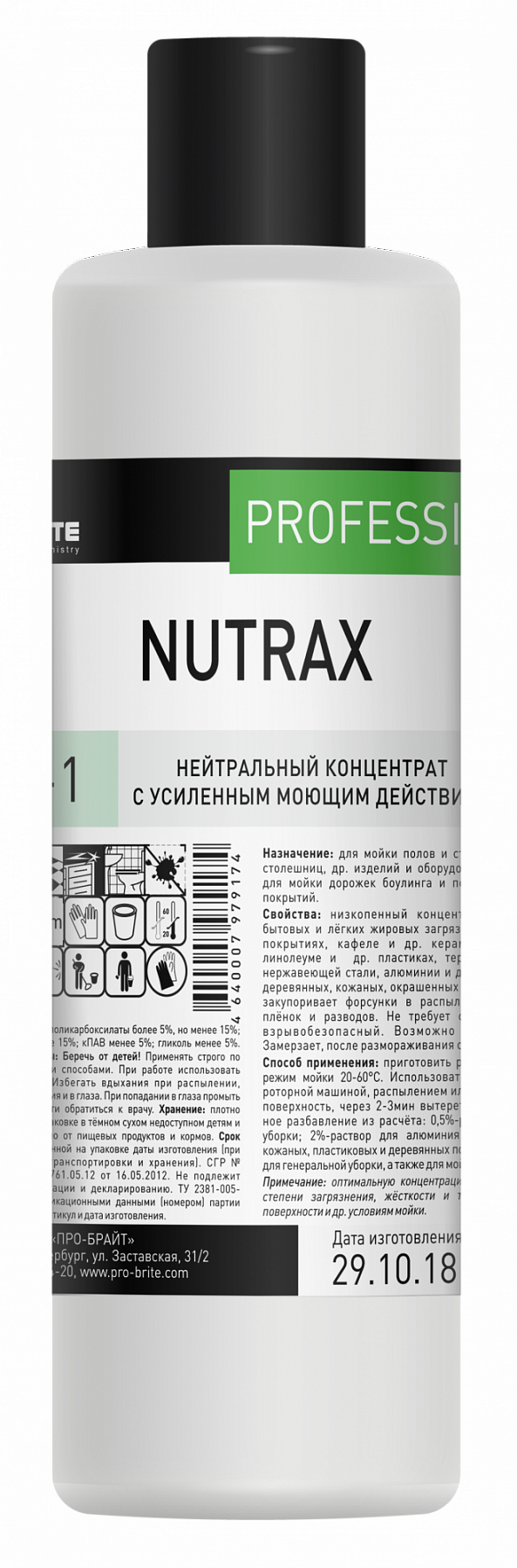 Pro-Brite: NUTRAX 1л/10шт Нейтральный концентрат с усиленным моющим действием