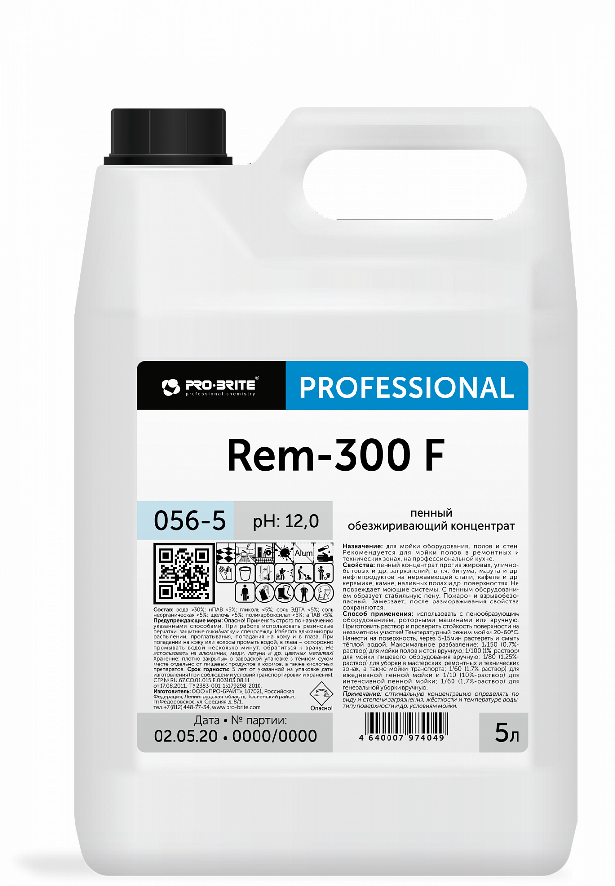 Pro-Brite: REM-300 F пенный обезжиривающий концентрат 5 л