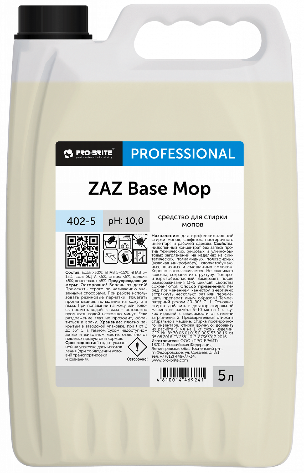 Pro-Brite: Zaz Base Mop 5л/4шт Средство для стирки мопов