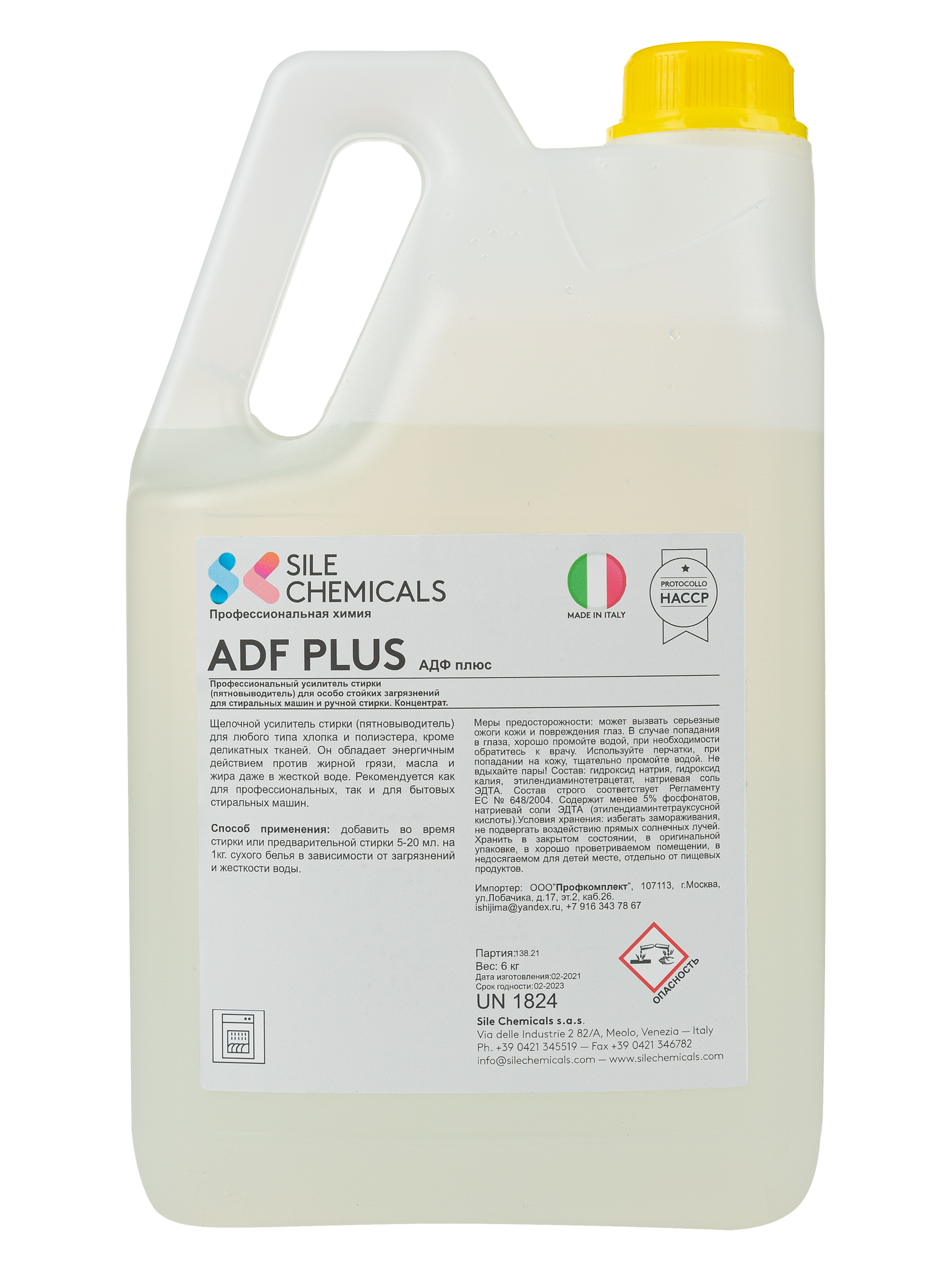 Sile Chemicals: ADF PLUS Усилитель стирки (пятновыводитель) 5л.(6шт.кор)