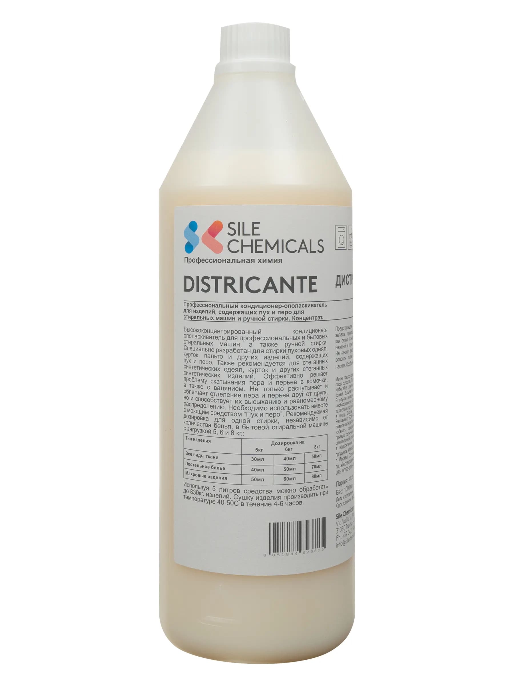 Sile Chemicals: DISTRICANTE Кондиционер-ополаскиватель д/изделий содержащих пух и перо 1л.(6шт.кор)