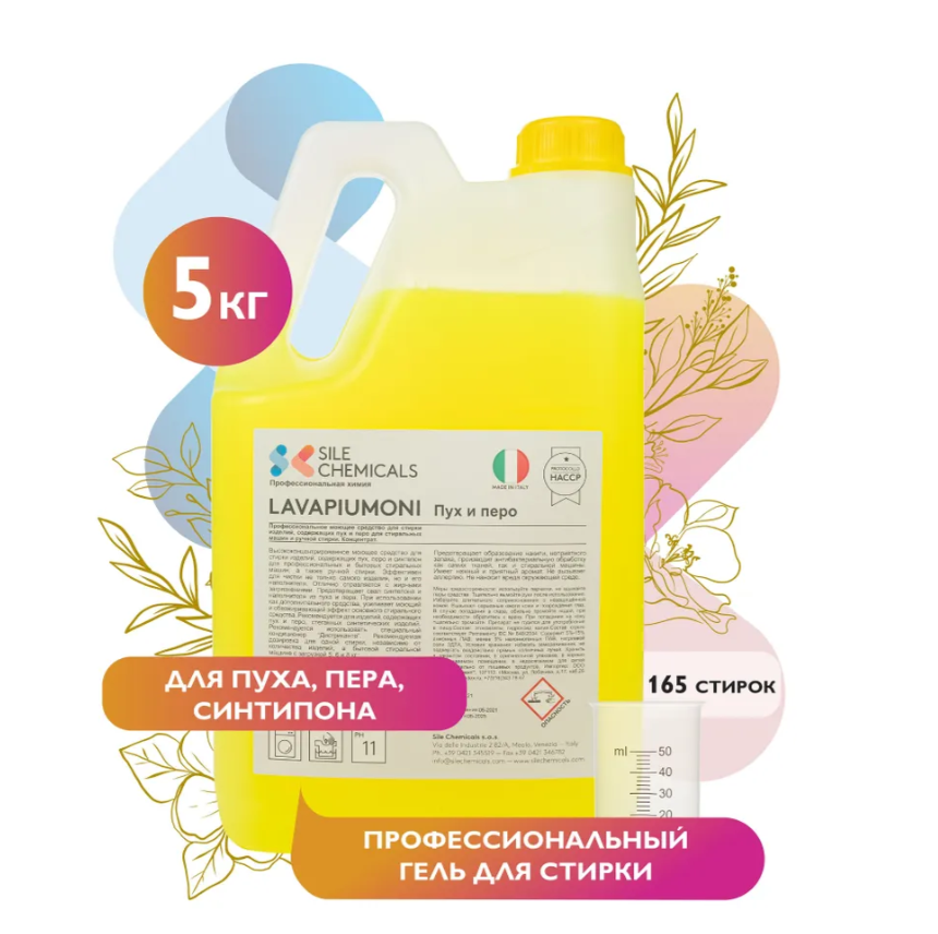Sile Chemicals: LAVAPIUMONI Профессиональный гель д/стирки изделий содержащих пух и перо 5л./4шт.уп