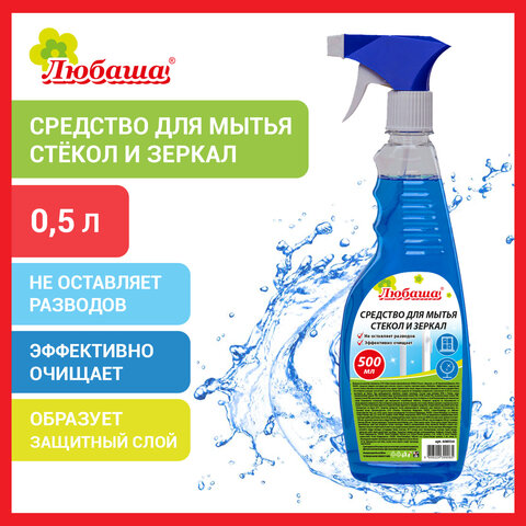 Средство для мытья стекол и зеркал ЛЮБАША эффективно для мытья оконных стекол, витрин, зеркал, автомобильных стекол, кафеля, хрусталя, фарфора, фаянса, экранов телевизоров и мониторов. Удаляет даже застарелую грязь, пыль и жир.