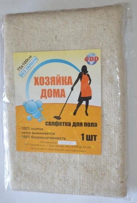 Салфетка для пола ХПП 75*100см "Хозяйка дома", в индивидуальной упаковке