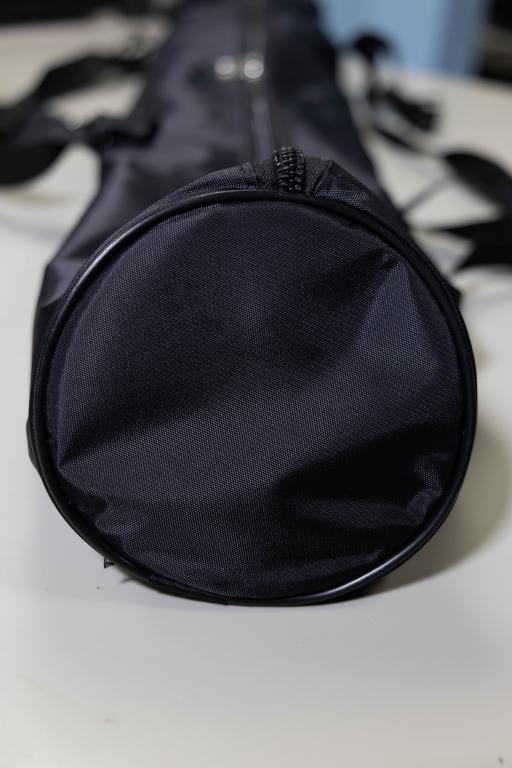 Диаметр тубуса – 15 сантиметров. Торцевая сторона по периметру прошита специальным усиливающим кантом (кедером) для прочности швов. Также внутри боковые стороны имеют пластиковые вставки. Они необходимы не только для поддержания формы тубуса, но и для предотвращения повреждения изделия концами палок. В тубус прекрасно помещаются и флаундеры.