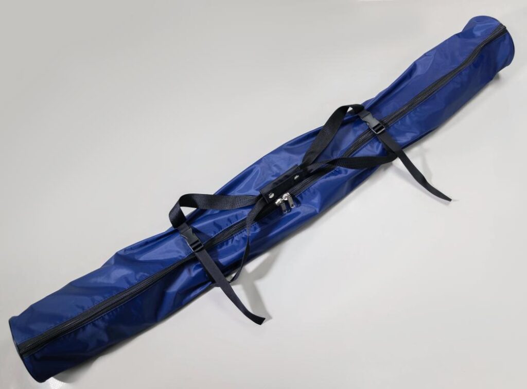 Если шестов, рукояток или палок немного, имеется специальная регулируемая утяжка из прочной стропы с фиксаторами. Она предотвратит «болтание» инвентаря внутри тубуса. Сам чехол выполнен из прочной ткани oxford D420 или кордура D 1000. Оба материала просты в уходе, обладают повышенной прочностью, износостойкостью и долговечностью.