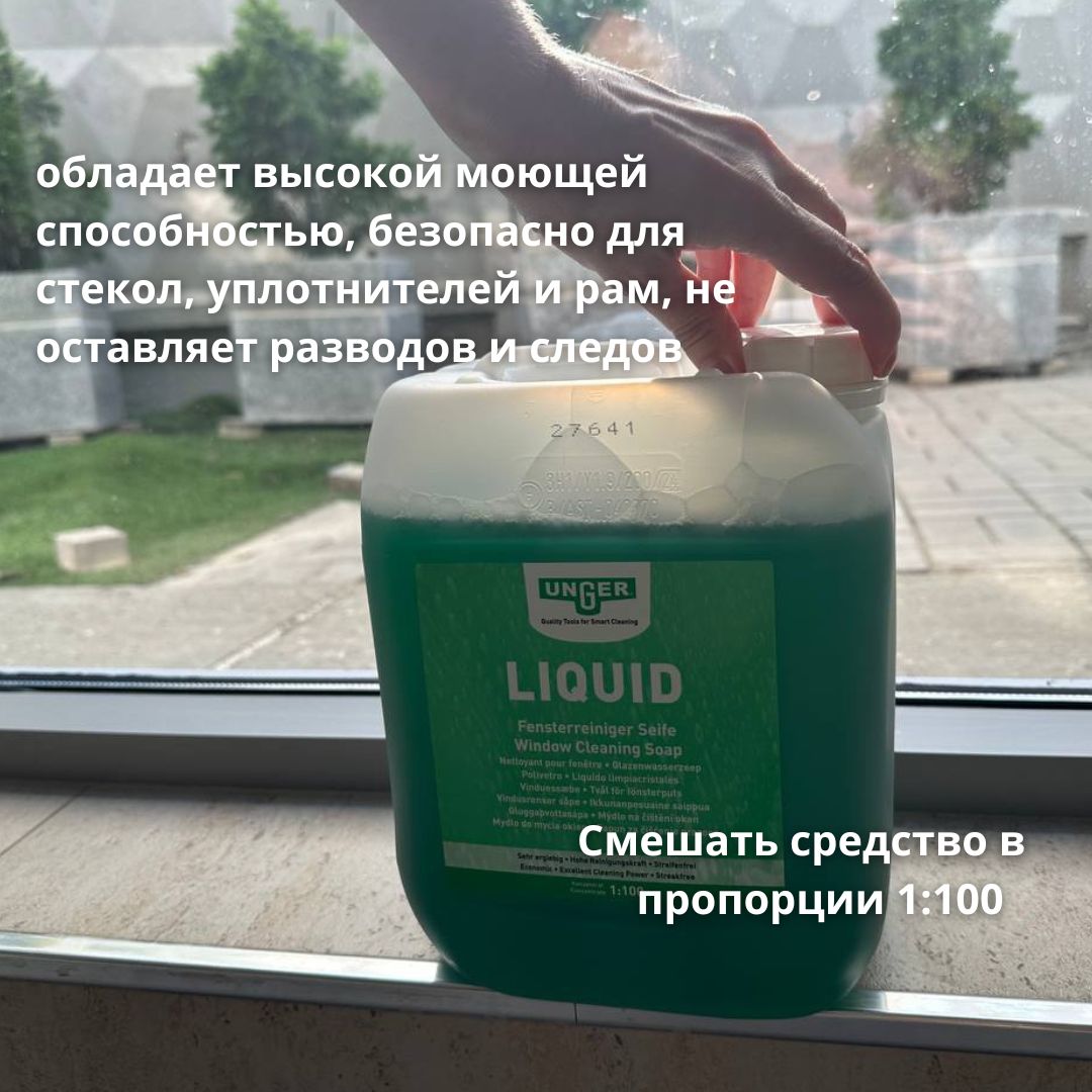 Средство не раздражает кожу, обладает высокой моющей способностью, безопасно для стекол, уплотнителей и рам, не оставляет разводов и следов, не взаимодействует с резиной стеклоочистителей. Наилучший результат будет, если воспользоваться профессиональным оборудованием для мытья окон фирмы "Unger".