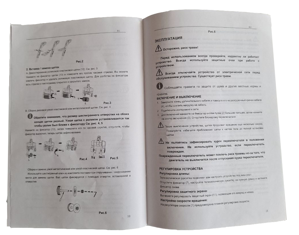 Скорость вращения чистящей щетки - 750-1300 об/мин